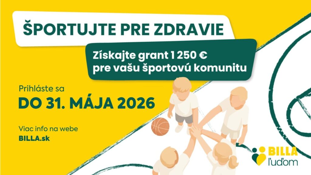 Motivujete svoju komunitu k športu a máte v meste či obci predajňu BILLA? Do grantového programu ŠPORTUJTE PRE ZDRAVIE sa zapojte kliknutím sem. Následne vyplňte prihlasovací formulár a ten zašlite na adresu granty@billa.sk s predmetom e-mailu „Športujte pre zdravie 2026“. Čas na prihlásenie sa máte do 31. 5. 2026, víťazné projekty budú oznámené do 15. 6. 2026.